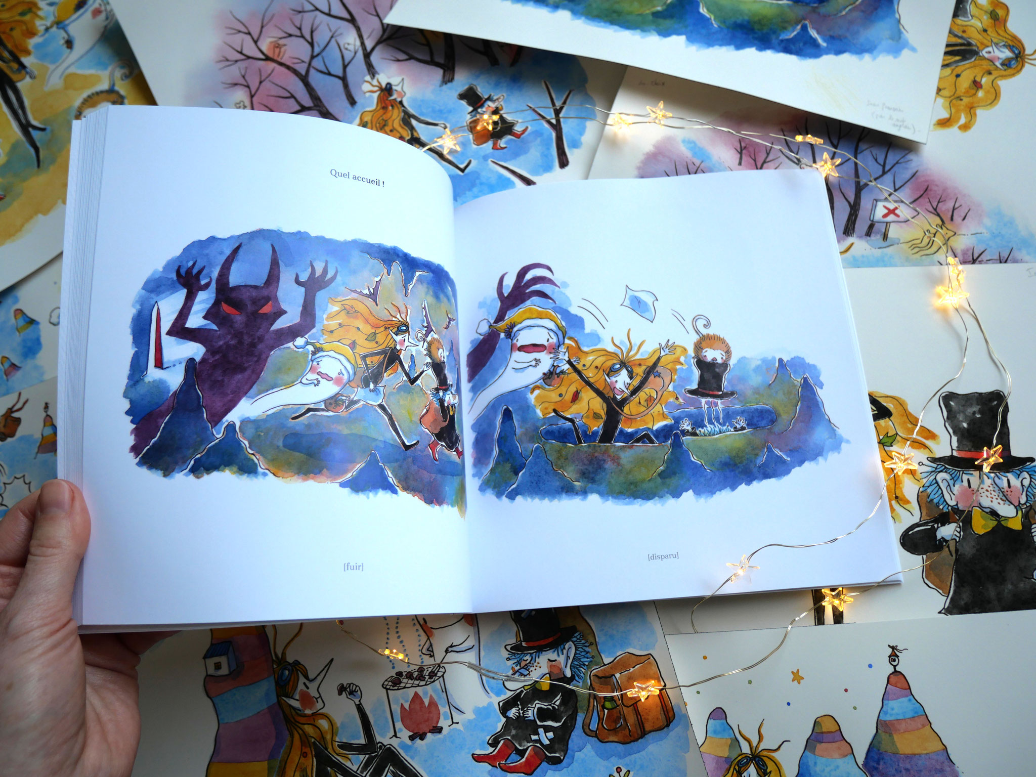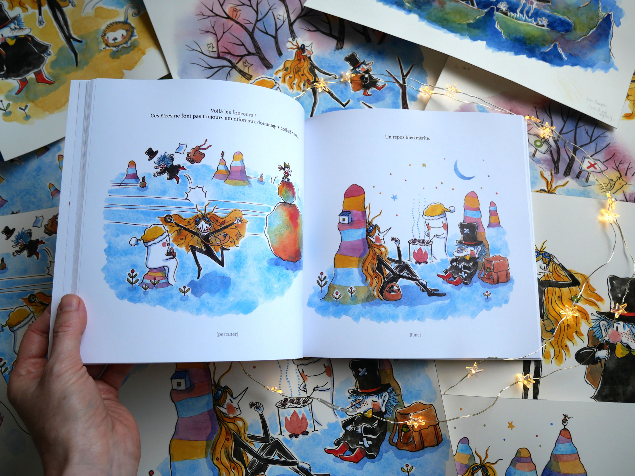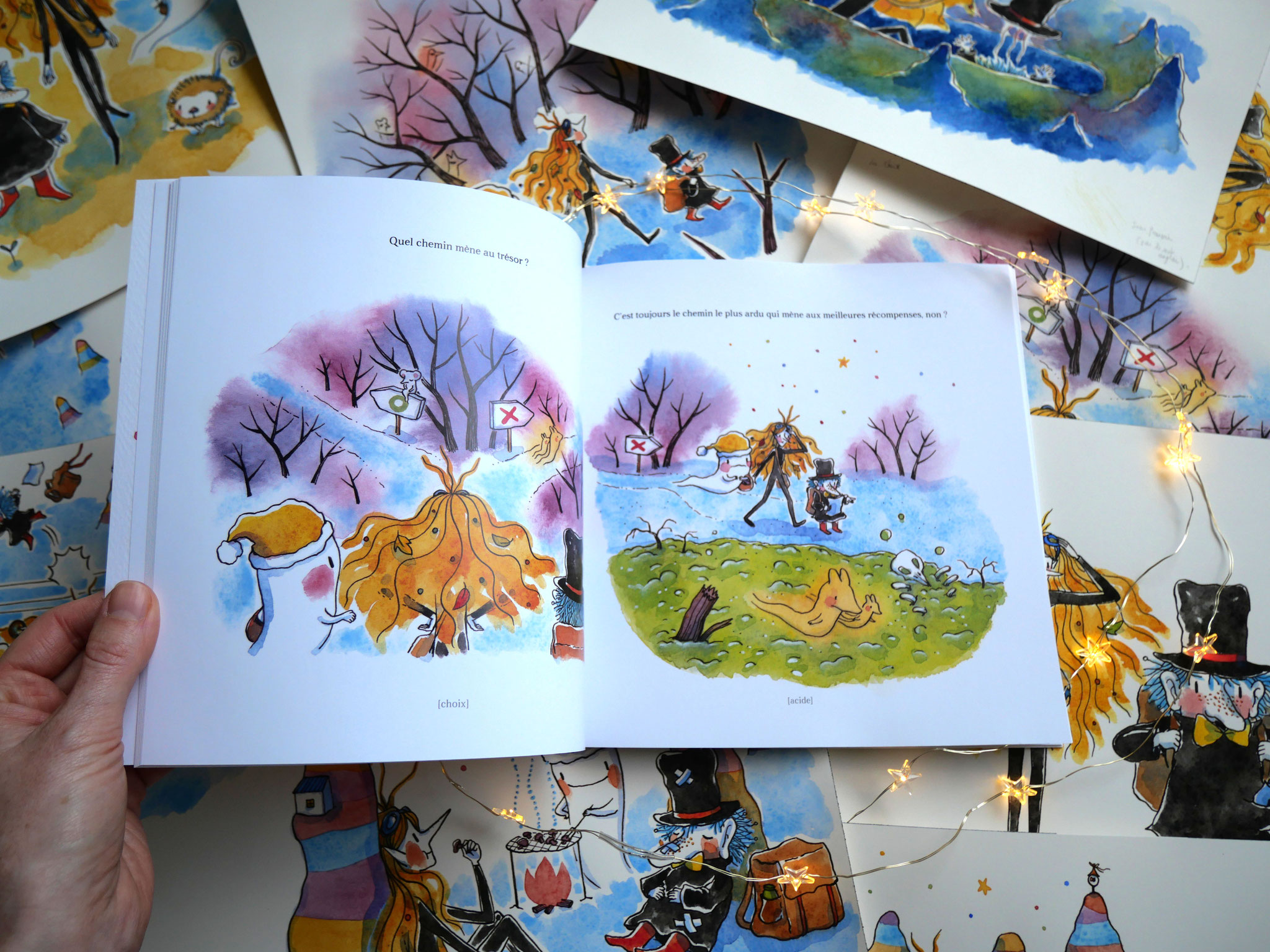 Chaque illustration a été réalisée de manière traditionnelle, à l'aquarelle, avant d'être scannées puis regroupées dans ce petit ouvrage composé avec soin.
