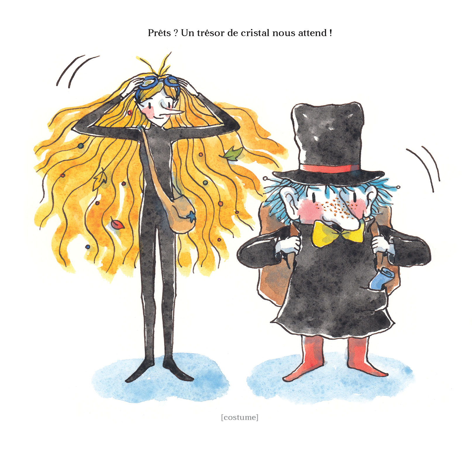 Eugénie Belle-de-nuit et Olympe Coin-Coin sont tranquillement assis à une terrasse lorsqu'un drôle de papier leur tombe dessus : une carte au trésor. S'ensuit une fantastique aventure où se mêlent side-car magique, hommes-oiseaux, fantômes et autres créatures fantaisistes. Malgré les obstacles, parviendront-ils à trouver le trésor de cristal ?